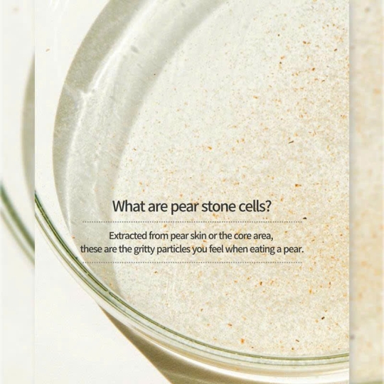 - Pear stone cell(5,000ppm): Lấy trọn vẹn các dưỡng chất từ tế bào gốc vỏ quả lê, giữ trọn dưỡng chất giúp lấy đi các lớp cặn bã nhờn trên bề mặt lỗ chân lông , làm sạch tẩy tế bào chết gấp bốn lần so với các thành phần khác mà không gây ra bất kì một tổn thương nào phù hợp da thường và da khô