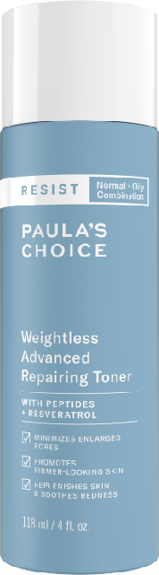 - Nước cân bằng da Resist Weightless Advanced Repairing Toner là gợi ý tiếp theo mà Paula’s Choice Vietnam dành cho những người đang sở hữu làn da dầu đến da thường, mong muốn tìm kiếm một sản phẩm toner phù hợp có khả năng duy trì độ ẩm thiết yếu, làm mềm làn da đồng thời hạn chế tối đa những thương tổn do lão hóa mang lại.